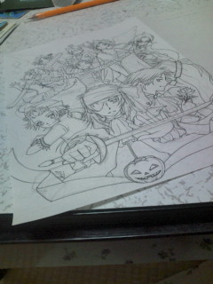 さてさて、明日までは仕事も休みだし、少しでもハロウィン絵を進めねば・・・!終わったら、ペル3ポータブルの発売おめでと絵も描く予定なんだ・・・・よ・・・・・(こちらも大人数だよ!!)